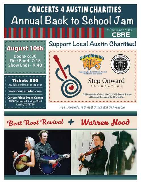 A poster design for local Austin bands, The Watters and The Texas K.G.B. in a show put together by charity organizers Concerts 4 Austin Charities (C4AC)